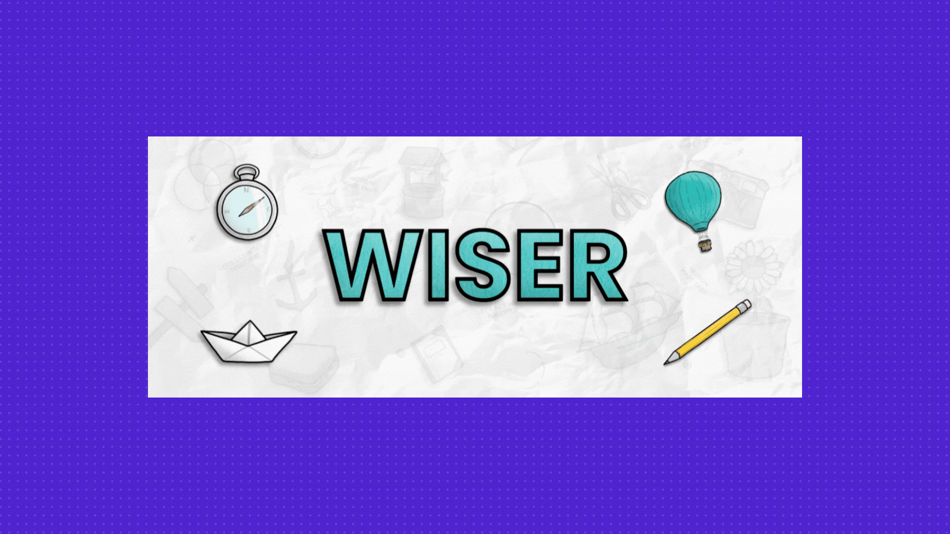 The crumpled paper background makes the "WISER" text and moving icons really stand out.