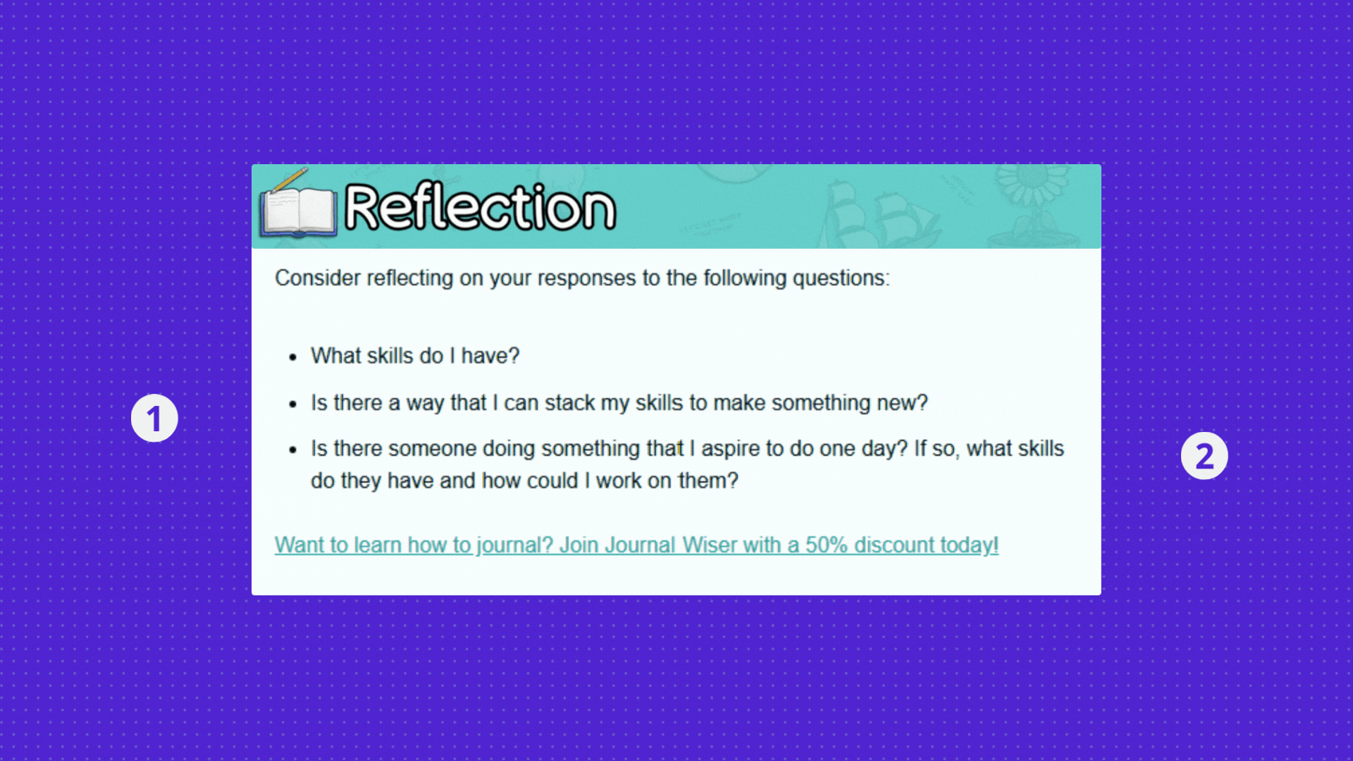 "Want to journal?" works perfectly; it's subtle, effective, and doesn't interrupt the page's flow.