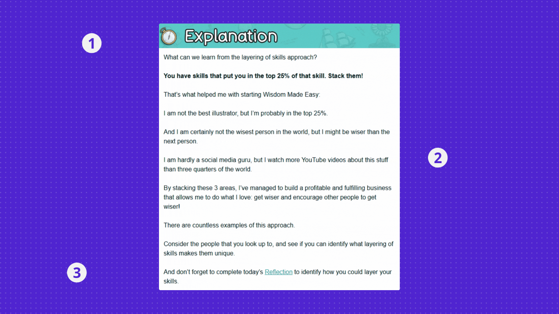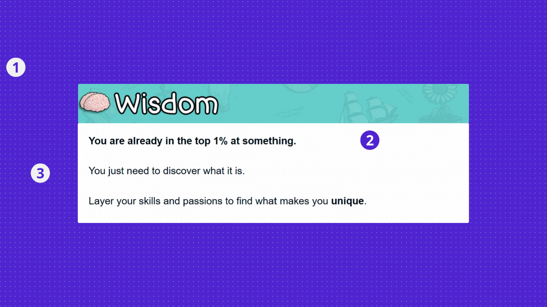 Show, donโt tell. It's a visual extension of the Wisdom section.