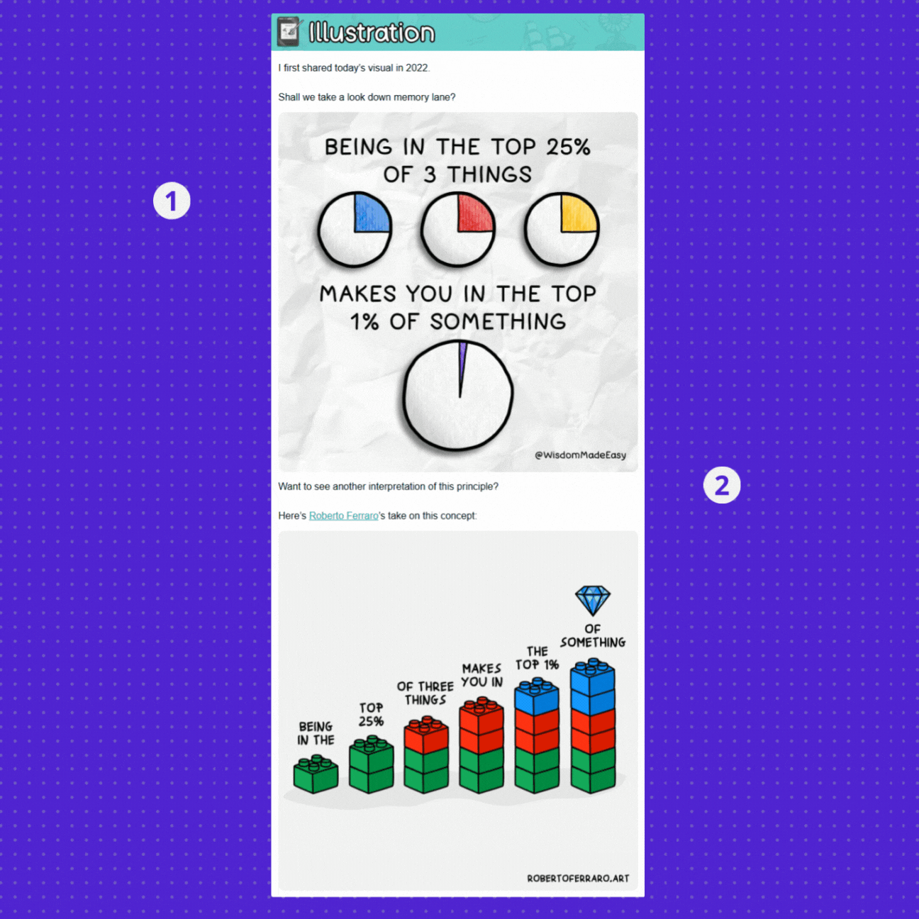 There are countless self-improvement newsletters, but Wiser does things differentlyโpairing thought-provoking visuals with actionable insights to help you get wiser.