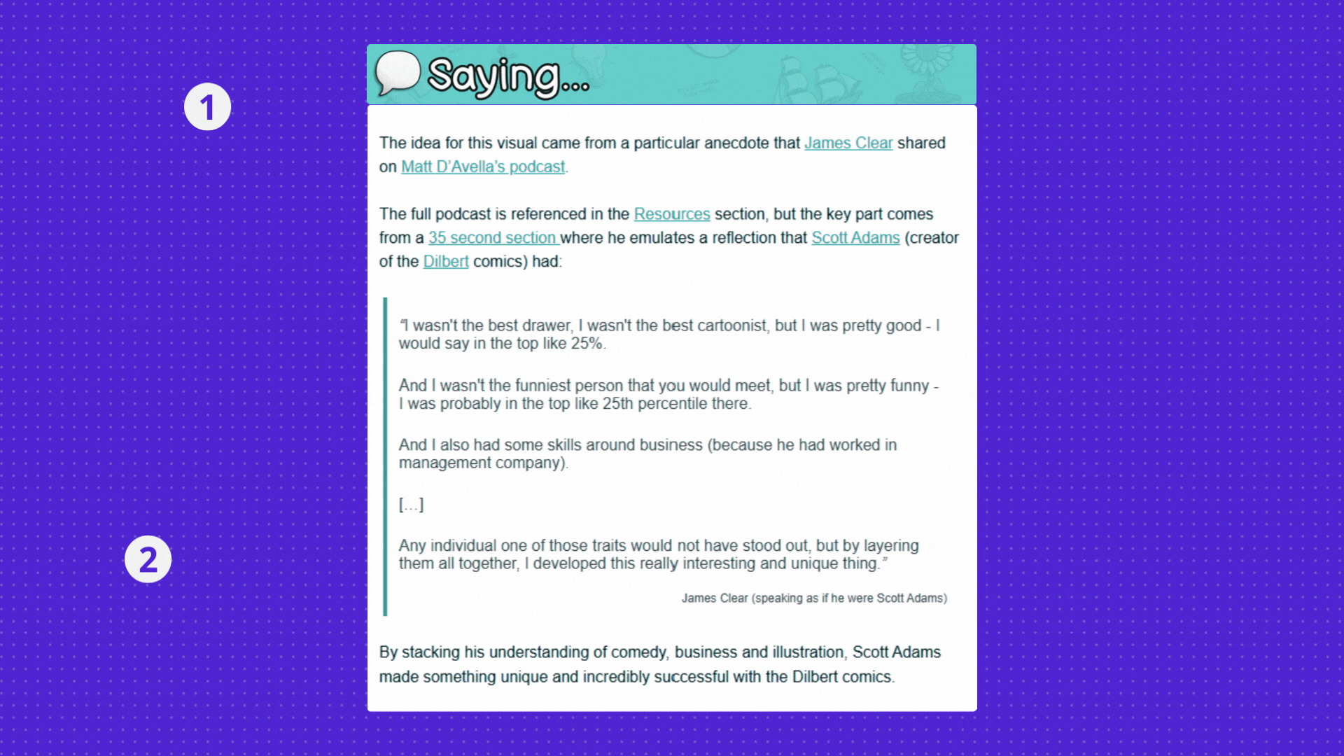 Provides, based on his own perspective and taste, the most impactful quotes from such resource.